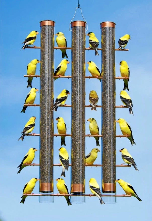 Finch’s Favorite 3-Tube Feeder does super duty feeding 24 finches at once, and keeps them all in perfect view!